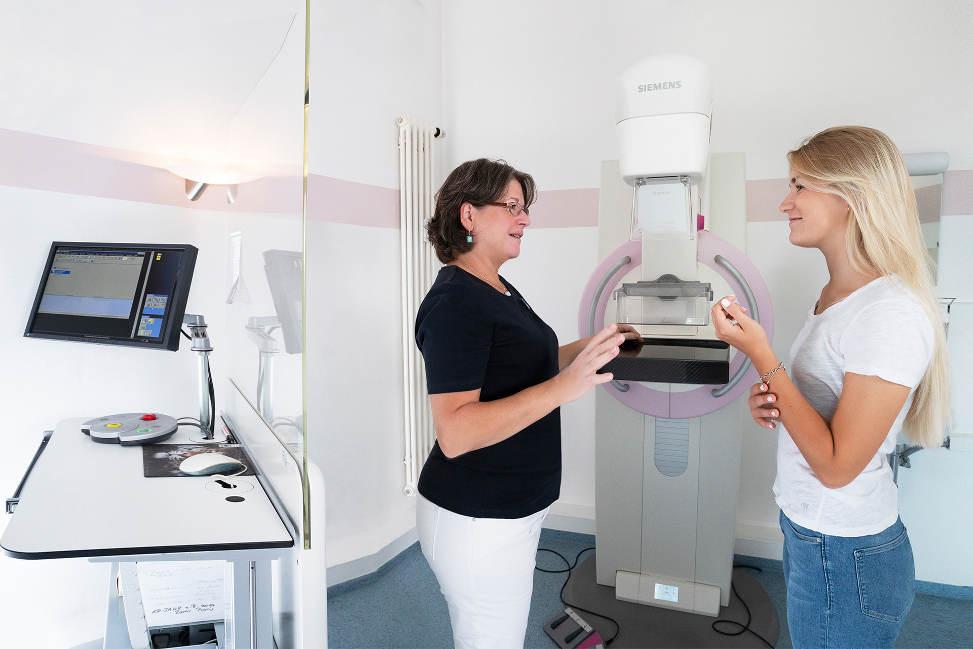 Die mit der Brustdiagnostik befassten Ärzte und Assistentinnen unserer Praxis verfügen über viel Erfahrung und Einfühlungsvermögen. Wir bemühen uns, nicht nur die Erstellung der Mammographieaufnahmen und die Tast- und Ultraschalluntersuchung der Brust so angenehm wie möglich für Sie zu gestalten, sondern auch weitere diagnostische Maßnahmen, wie z.B. die Stanzbiopsie, bei der Gewebeproben in minimal-invasiver Vorgehensweise gewonnen werden.